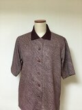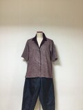 えんじ色の絞りの羽織りから半袖ブラウスを作りました。