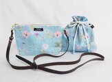 リバティイルマ柄爽やかミントブルー、綿タナローン地の巾着袋です。