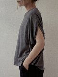 デザインは気になる二の腕をカバーするゆったりシルエットの変形ドルマンTシャツです。自然に落ちる袖下から脇の柔らかなドレープが洗練された大人の印象になります。