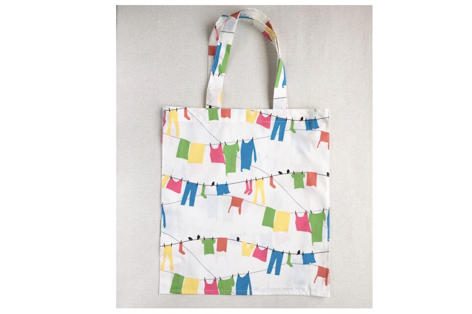サブバッグ エコバッグ 一枚仕立て 洗濯物と小鳥