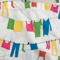 カラフルな洗濯物が干され、風に揺れてるような風景です。