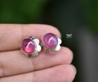 高品質★透明★ピンクルビー シルバーピアス1113