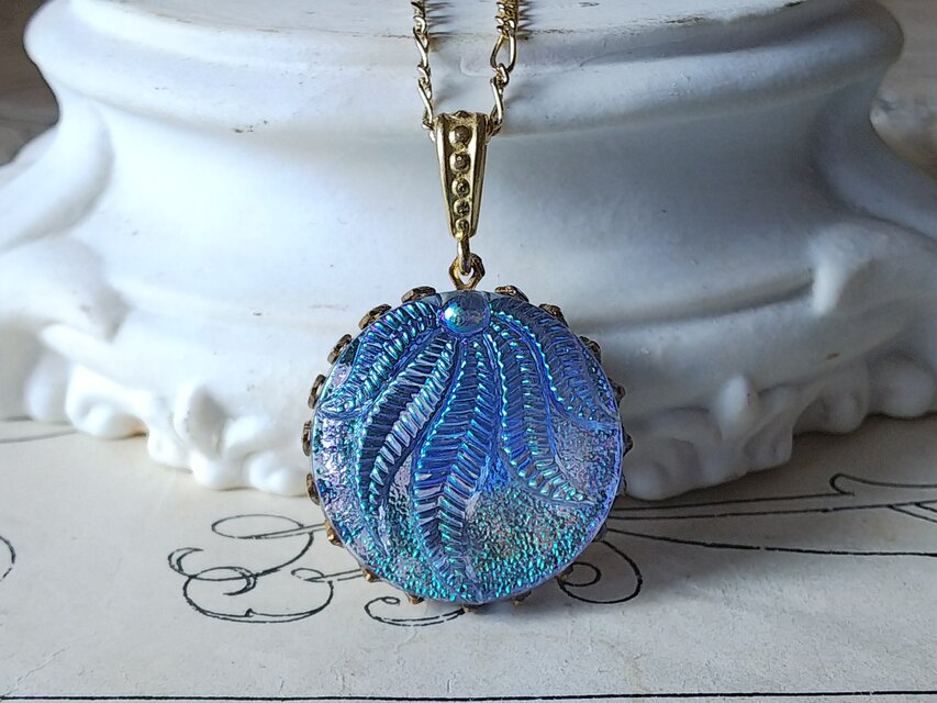 ヴィンテージ BlueオーロラLeaf(23㎜)クラシカルネックレス