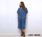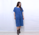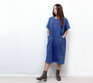 藍染め、手挿し刺繍の可愛いシンプルワンピース、オールシーズン、ライトインディゴ