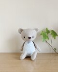 リネンとコットン生地を使って、くまのぬいぐるみを作りました。