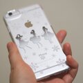 雪の中でクルクル舞うような女性のシルエットが美しいクリアスマホケースです。