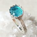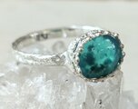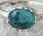 南国の海岸線を思わせるようなアリゾナ産ジェムシリカを銀のレースで飾った925リング。。レース素材そのものを銀に置換鋳造したものでリアルなテクスチャーも綺麗です**果てしなく長い時間を経てクリソコラと石英が混ざり合った鉱物の神秘。。ミルキーなカルセドニーに濃淡のクリソコラやマラカイト成分が漂うレアストーンをお楽しみ下さい*リングはマット仕上げ、10~18号(推奨サイズ)の範囲を目安に調整可能、サイズ確定後にレースと粒々で包むように石留め致します*通常、黒化遅延コート処理を施しますが銀そのものの経年変化がお好みの場合は『処理不要』とお申し付け下さい*黒化防止ロジウムやK14・K18・K18ピンクゴールドをご希望の場合は承ります(別途1000円)