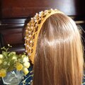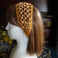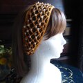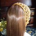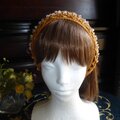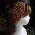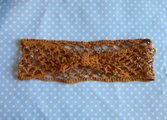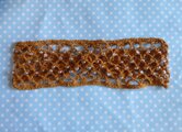 レンガ色の麻混コットン糸でネット編みにクリアなビーズを編みこんだヘアバンドです。糸は並太くらいの太さの夏糸です。