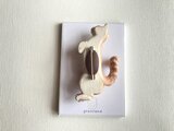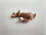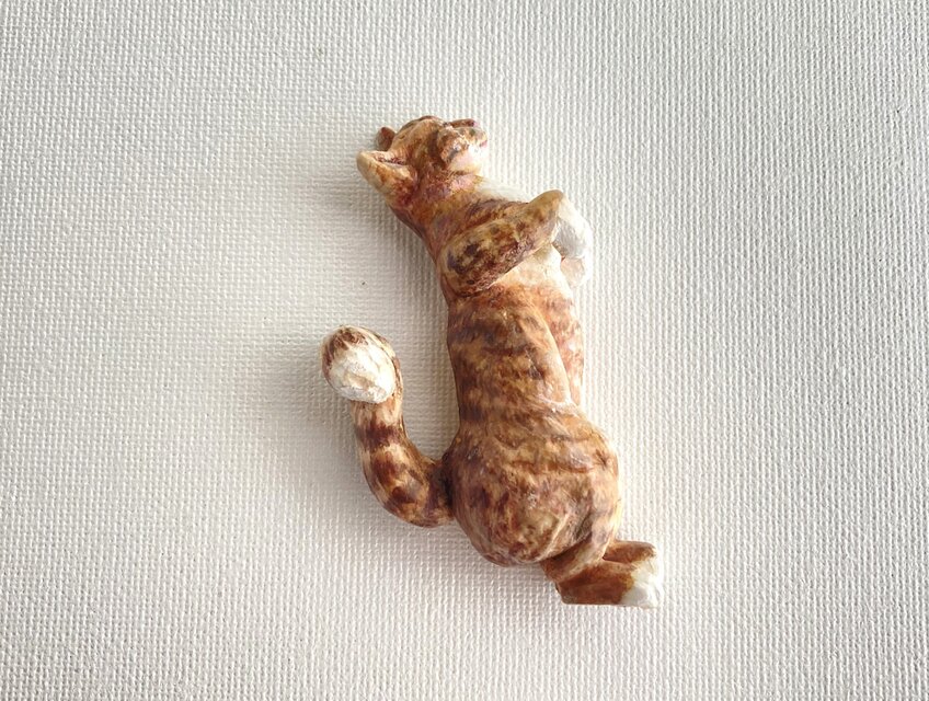 リピートです。今度の作品も大変可愛く、ぬくもりを感じます。木彫りですので軽やかなのも良いですし、毛並みがまるで本物の猫のように見えます! 付けない時は前回購入したブローチとセットで飾ります。 今回もありがとうございました!