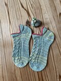 ちなみに竹串か?!ってくらい細い針で編んでるので意外と薄いです。普通の靴下と同じように履けますよ♪