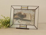 ストライプ模様のクリアガラスと金色の真鍮飾りでレトロな印象のフォトフレームをつくりました