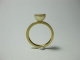 淡水パールを切り、断面を磨いて中の真珠層を見せたリングです。
