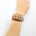 編み込みの重厚感に視線を集めることで、腕が細く見えてエレガントな雰囲気。