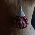 Two white glazed harf porcelain, Old fabric: french 1930-1940s Linen, Brass, Wood.