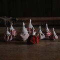 石の匂いを感じさせる灰白色のハーフポーセリン(半磁器)に鉱物等で表情や頭髪を描き、