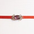 こちらの商品は石を囲む台座と、帯につける金具はともにシルバー色となっております。