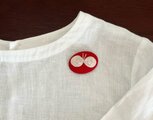 サーモンピンクの地に黒い花の刺繍、ありそうでなかったこの色のとりあわせ、すてきなブローチでした。