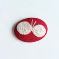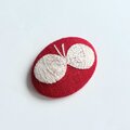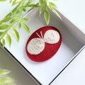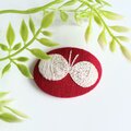 赤のコットンにオフホワイトの糸で北欧風の素朴で大人可愛いデザインの小さな蝶々を丁寧に刺繍しました。