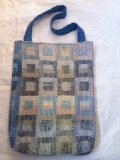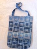 ■何度も水を通した白い布を植物で染め、藍と数色の植物で染色した糸を経糸にして染めた布を裂いて、二重に織ります。バックには最適です。