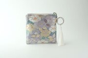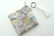 波と椿模様が爽やかな印象のシルク帯を使ったバッグチャーム型スクエアポーチです。