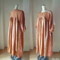 パッチワーク パッチワークスカート 着回し 大人可愛い ギャザースカート ロングワンピース マキシ丈ワンピース 7分袖 テラコッタ ブラウン ライトブラウン カフェラテ ココア 花柄 ストライプ パリ ロマンティック ゆったり サイズフリー ロングシーズン対応可能 ご褒美 1点もの