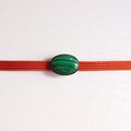 美しく鮮やかなグリーンに、繊細な縞模様が入った大きめなマラカイトの帯留めです。