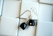 オニキスは直径8mm、長さ7mm程度のちょうどいい感じの大きさです。上下にシンプルなシルバーキャップをかぶせてあります。黒とシルバー、お色目もデザインもスッキリ美しいピアスかと思います。