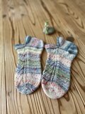 ちなみに竹串か?!ってくらい細い針で編んでるので意外と薄いです。普通の靴下と同じように履けますよ♪