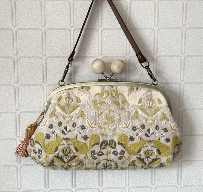 生地いっぱいのリス達が可愛く丁寧な刺繍が上質なお財布バッグとなりました