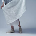 着丈はひざから5㎝ほど下。再度にスリットがはいっていて、歩きやすくなっています。薄手で軽く、ふんわりと風が入ってきてとても涼しく感じました。