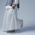 鮮やかなスカラップ刺繍がとても可愛らしく、一目惚れです! しっとり柔らかな黒のウールのマキシ丈なので、大人可愛い印象です。 カラフルなニットに合わせたり、ブラウスやデニムジャケットなども合いそうで、ワクワクします。 縫製も丁寧で、見えないゴムの入れ替え口もキレイな仕上がりです。 大切に着ますね!