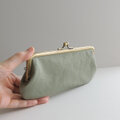 くったり感が魅力の上質なコットンキャンバス生地の横長がま口ポーチ