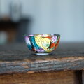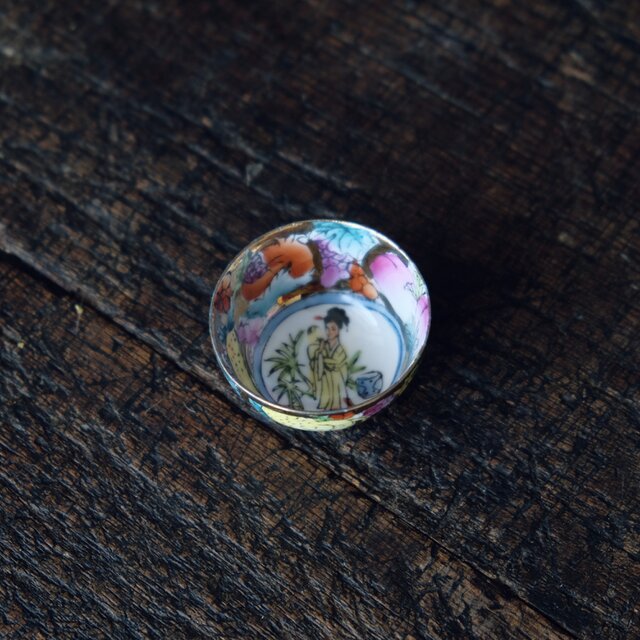 見込みに皇女◆花と果実。チャイナレトロで可愛い。中国景徳鎮 色絵金彩小ぶり猪口 カラフルな牡丹