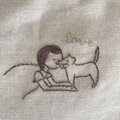 女の子とネコちゃんの優しい絵柄の表情に、ほっこりした気持ちになります…♪ かわいらしい巾着、ありがとうございました! また素敵な刺繍を楽しみにしております(^^)