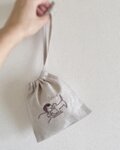 サイズ: たて16cm・ 横15.5cm・ ヒモ 絞った状態から結び目まで 15cm