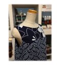 314 Aラインワンピース デッドストック浴衣地 紳士物×桔梗 紺 リゾート リラックス 涼しい 着心地