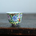 黄色で花尽くし◇チャイナレトロ 中国産 色絵小ぶり猪口 茶杯 煎茶茶器 器