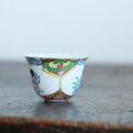 花と天女と蝶々◇中国産 色絵金彩小ぶり猪口 茶杯 煎茶茶器 チャイナレトロ シノワズリ