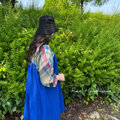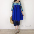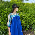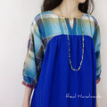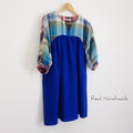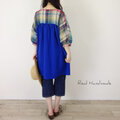 [予約販売] ワッシャーチェックとロイヤルブルーハーフリネンドロップチュニック