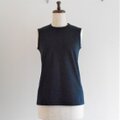 タイトな襟の開きと袖ぐり、シンプルなボディラインのこのノースリーブTは1枚で綺麗に着こなして頂けます。