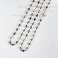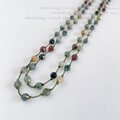 深いグリーンをメインに ブラウンやオレンジなど様々な色合いが美しいインディアンアゲートを使用したロングネックレス。