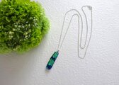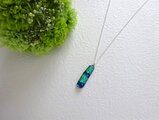 グリーンの煌めきと水玉模様が印象的な、ガラスを用いた表情豊かなネックレスです。