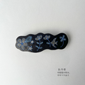 ◇刺繍ヘアバレッタ ”花と鳥”(牛革) BLACK