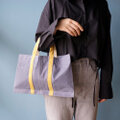 古くから親しまれてきた草木染めの色を、現代の暮らしに合うモダンなデザインのトートバッグに仕立てました。マチのないすっきりとした形で、小さめのサイズ感が軽やかな印象。
