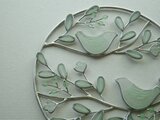 小鳥たちが木の枝に留まっている 淡い翡翠色が爽やかな夏のリースです。