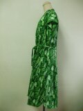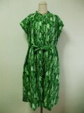 グリーン色地×木柄プリント 綿麻素材 スタンドカラーフレンチスリーブシャツワンピース L~LLサイズ 受注生産