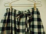 黒×生成り色 ブロックチェック柄 綿麻素材 かぼちゃシルエットパンツ M~LLサイズ 受注生産