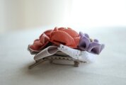 *アンティーク着物の八掛部分の柔らかい絹を使っています。微妙な色合いを出すために自分で染色した生地(絹)も利用しています。