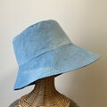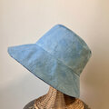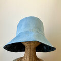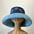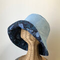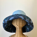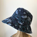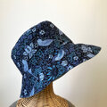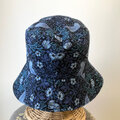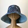 藍染めと、植物柄のBest of Morrisのプリント柄のリバーシブルの帽子