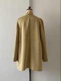黄金色のキャメルで、若干光沢があります。着物に仕立てていた時の折り目が取れないのでお値引きしております。えりに松の柄。所々金箔も使用されており、華やかです。